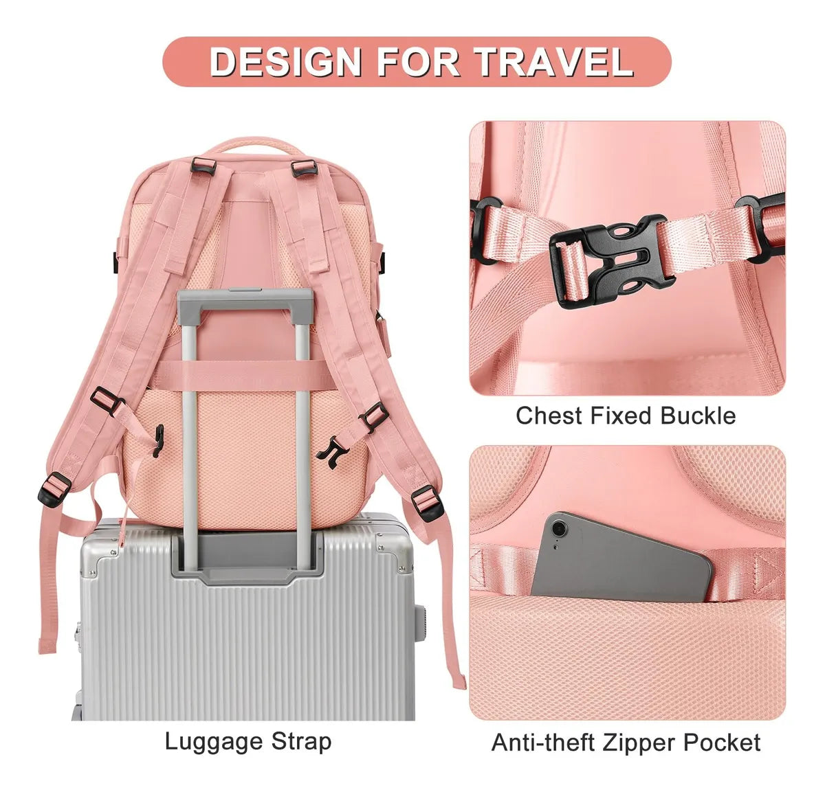 Mochila de Viaje para Avión – Gran Capacidad | Color Rosado
