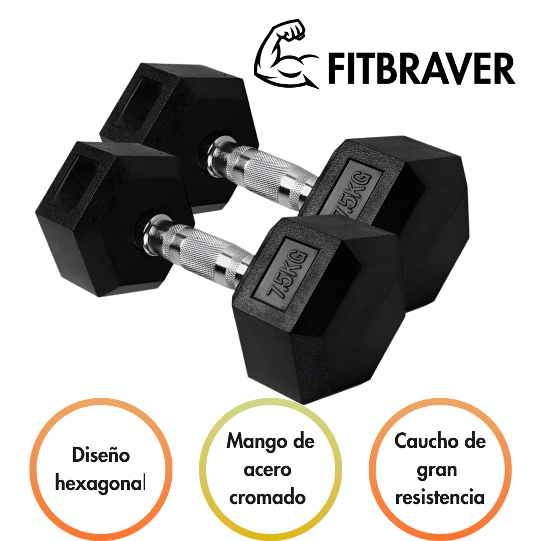 ¿Quieres comenzar o complementar tu rutina de ejercicios con un equipo práctico, seguro y duradero? El par de Mancuernas Hexagonales Fitbraver de 7.5 kg cada una es una excelente opción para entrenar de forma efectiva tanto en casa como en el gimnasio.